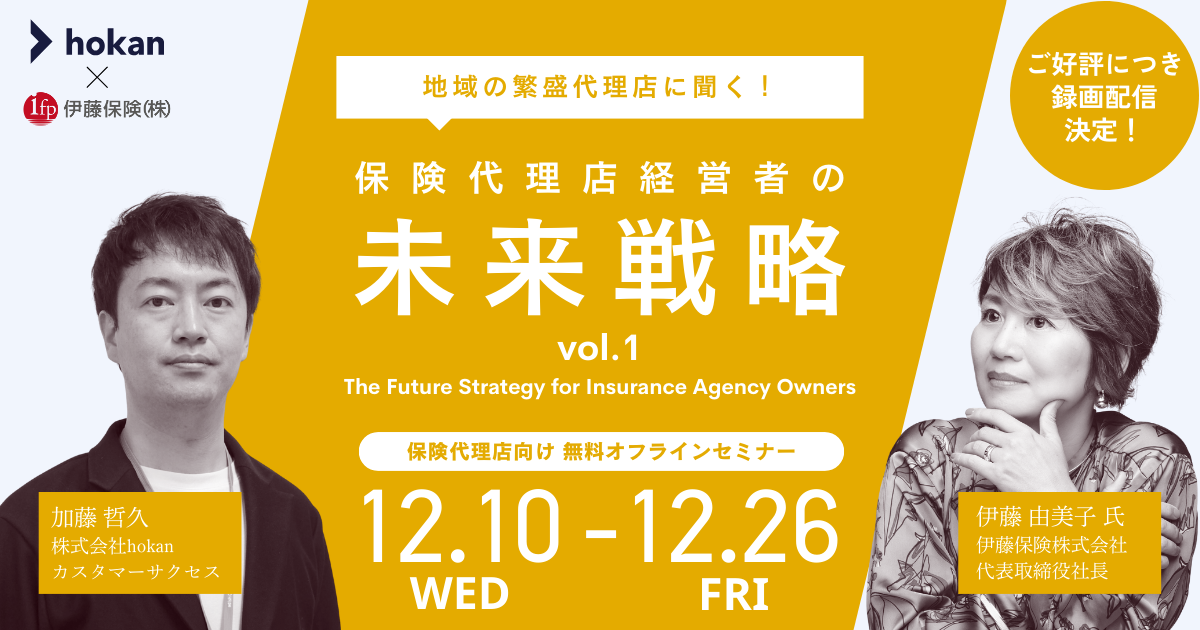 【視聴可能期間:25/12/26(金)まで】【2025年人気セミナー3選!】地域の繁盛代理店に聞く!保険代理店経営者の未来戦略 vol.1