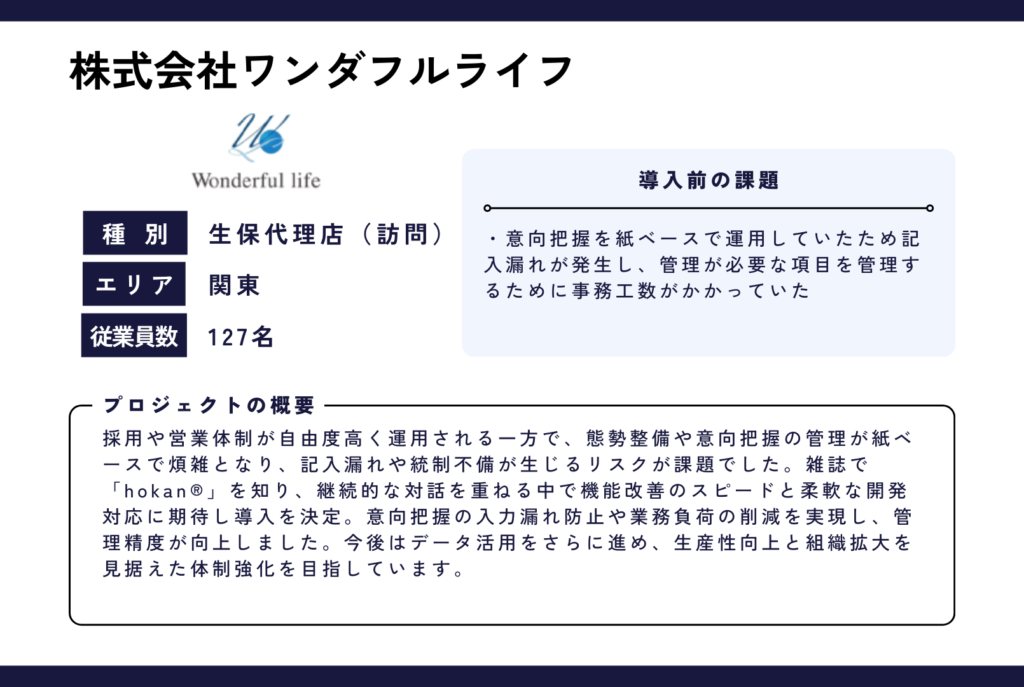 hokan®のご利用をいただいている保険代理店様を対象に、hokan®を導入するにあたっての課題や背景、実際に利用してみての所感など、ありのままをお話いただくインタビューを実施しています。