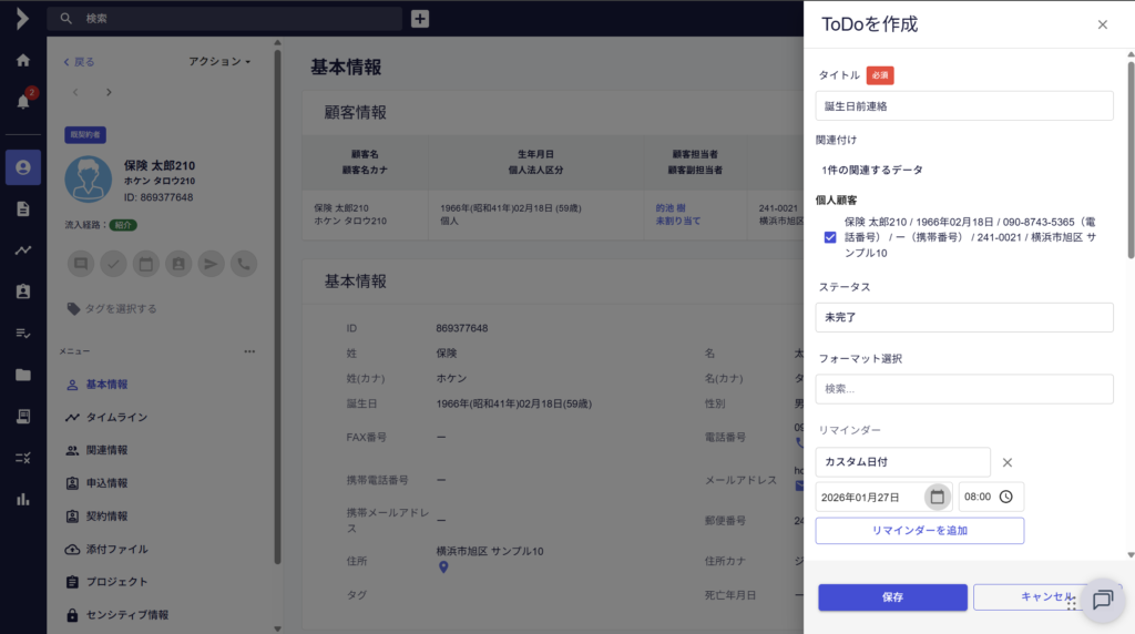 もしあの時、hokan®︎があれば: Todo設定で誕生日1ヶ月前に通知が来るように設定しておくだけで、該当日に自動でリマインドしてくれます。付箋や記憶に頼らずとも、システムが確実に案内を促してくれたはずです。