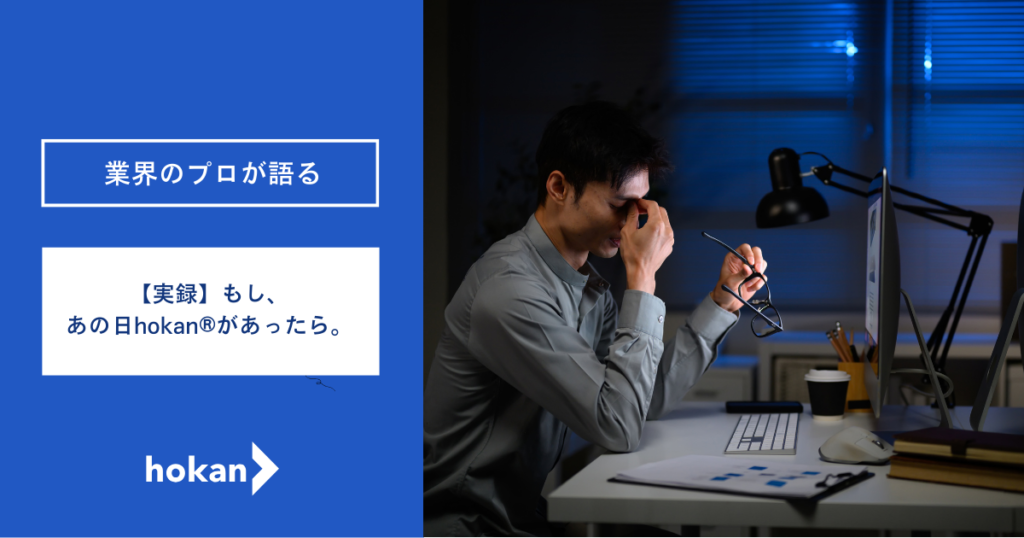 実はその後、Aはhokan®︎を導入している代理店へ移りました。先日連絡を取った際、「あの頃の冷や汗が嘘みたいに、今は落ち着いてお客様と向き合えているよ」と元気に話し、笑い合った彼の手元には、当たり前のようにhokan®︎があります。