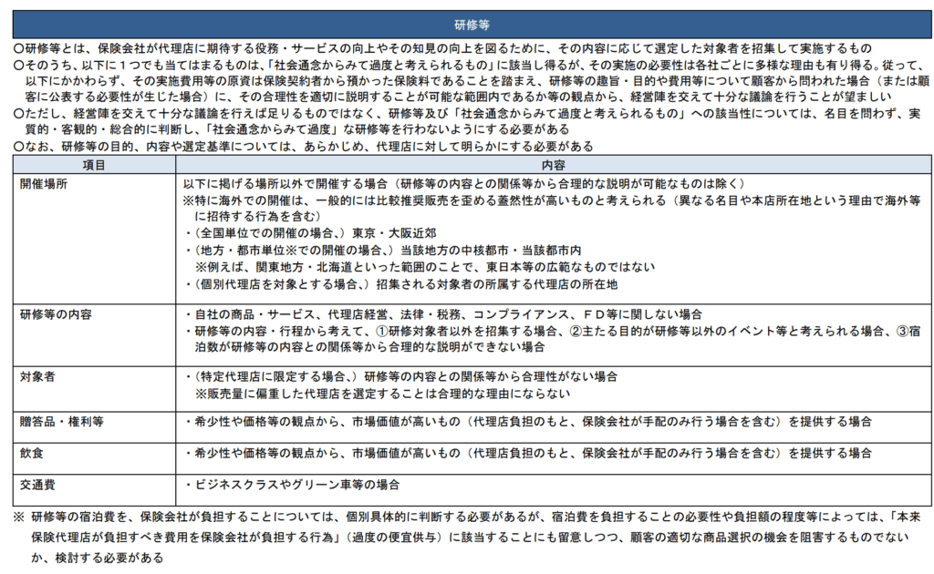 そのうえで、損保業界と異なる文化として、インセンティブ報酬や表彰、研修といった点について詳細に規定しています。