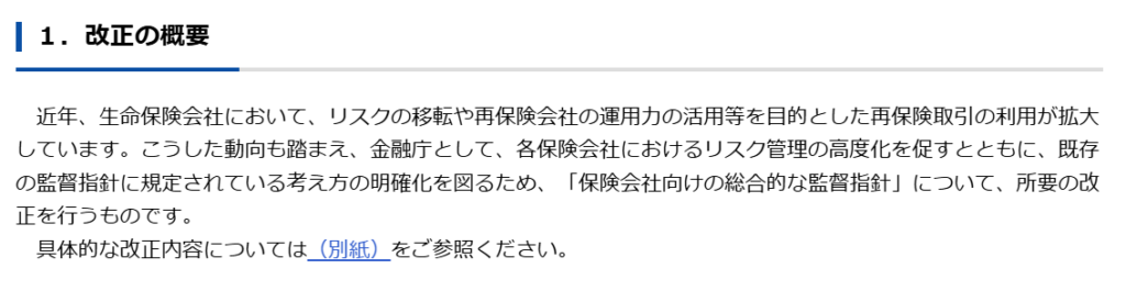 【速報】再保険等の活用、リスク管理の高度化に関して、監督指針改正案が公表されました