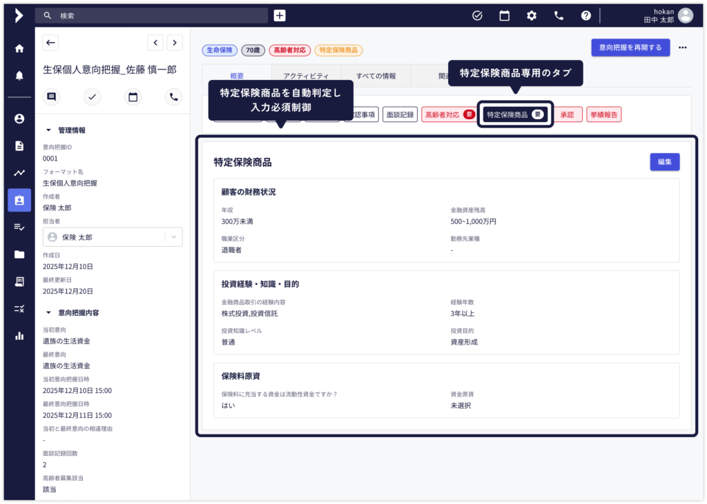 ■ 2. 特定保険商品の提案判定を自動化し、記録項目を必須制御